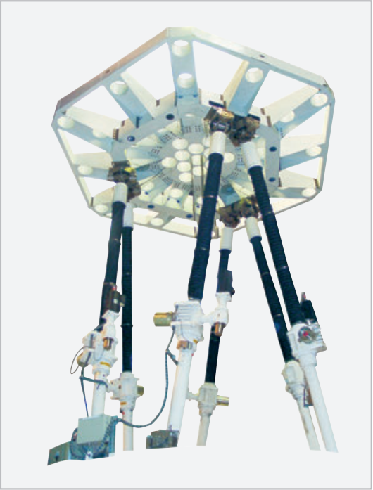 應(yīng)用圖例: VERTEX 天線技術(shù)有限公司射電天文接收器并聯(lián)運(yùn)動(dòng)驅(qū)動(dòng)系統(tǒng), 由6根HSE高性能蝸桿絲杠升降機(jī)組成,升降高度3500mm。該系統(tǒng)用于同一平臺(tái)上 數(shù)個(gè)射電望遠(yuǎn)鏡的定位。