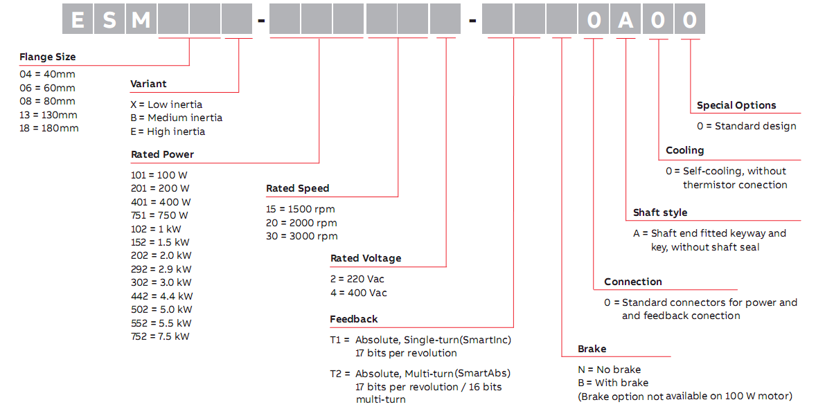 ESM系列伺服電機用于高動態(tài)精度的運動控制由于其轉(zhuǎn)矩密度高,ESM系列伺服電機具有高動態(tài)響應(yīng)。單圈和多圈高分辨率值編碼器反饋可選件可匹配應(yīng)用要求。ESM系列電機外殼符合IP65防護等級。額定功率從0.1kW至7.5kW,五個標準的框架法蘭尺寸為40,60,80,130和180毫米,可添加制動可選件。框架40-80法蘭的電機提供引出線,方便電機動力和反饋的連接。