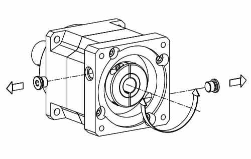 松開行星減速機法蘭中的密封螺釘(或取下塞子)。然后轉動夾緊環,使裝置在行星減速機夾緊環中的螺栓的頭部坐落剛取下塞子后構成的孔的前面。