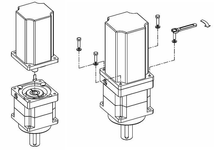 一個十分重要的過程是電動機與行星減速機的結合。行星減速機必須十分嚴密地粘附在發起機上。電機和行星減速之間不得有間隙。應運用具有恰當力的扭矩扳手擰緊將電機銜接到減速機的螺釘。